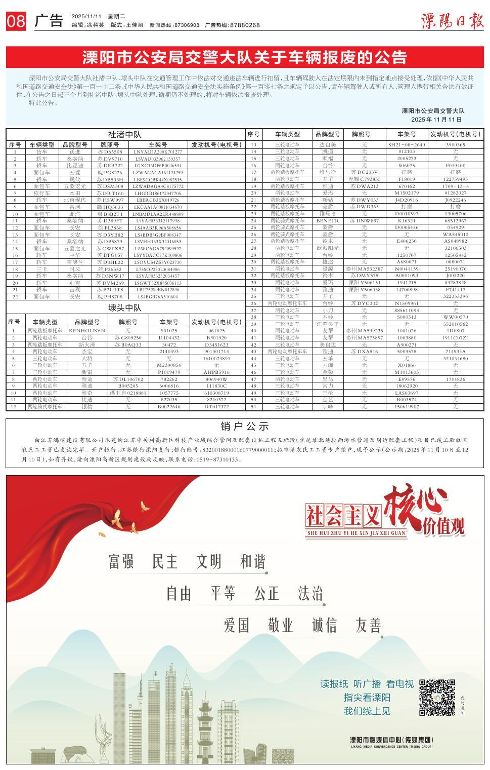 溧阳市公安局交警大队关于车辆报废的公告